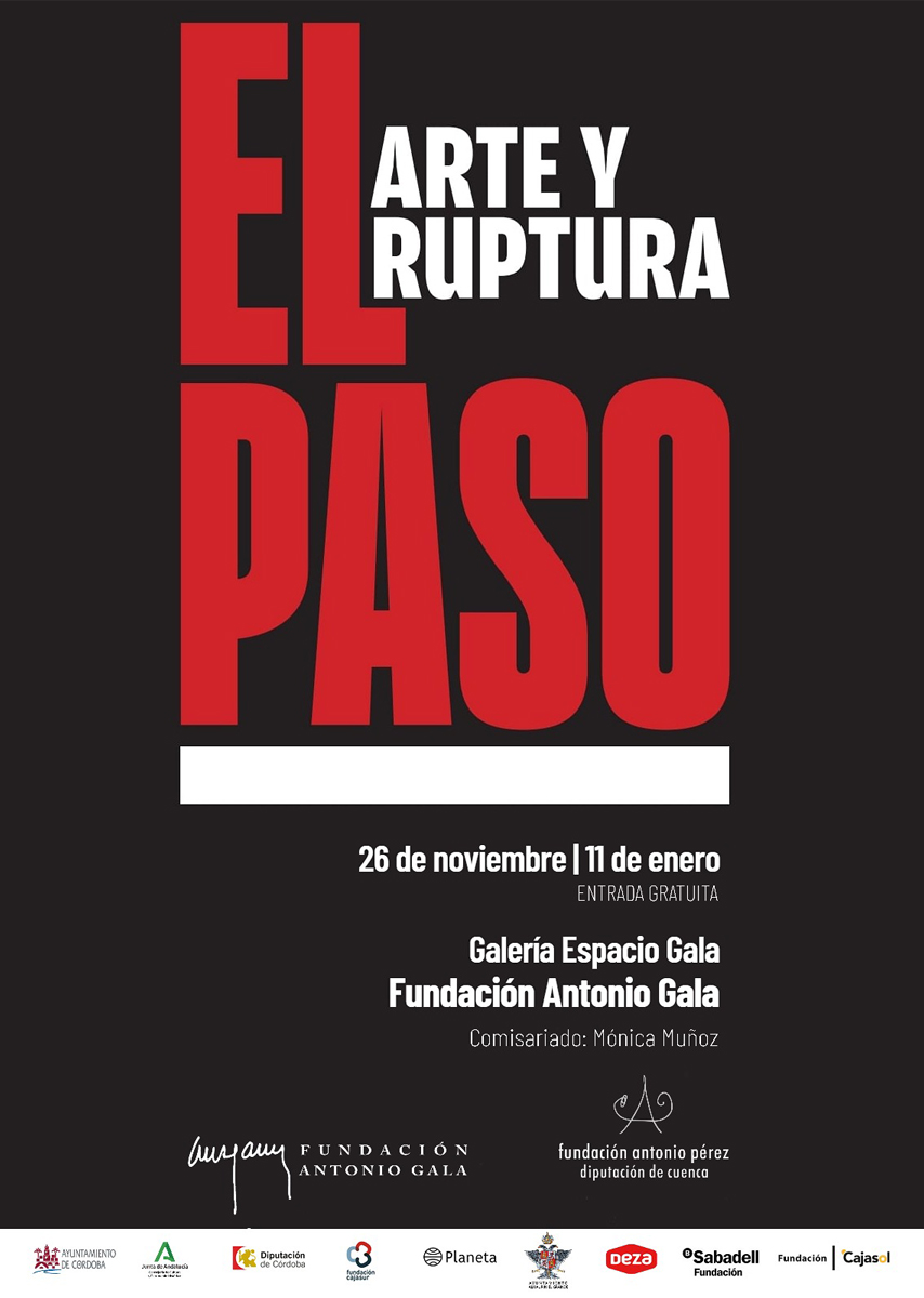 La Fundación Antonio Gala de Córdoba, en colaboración con la Fundación Antonio Pérez y la Diputación Provincial de Cuenca, tienen el honor de presentar la muestra, El Paso Arte y Ruptura, desde el 26 de noviembre al 11 de enero, en la Galería Espacio Gala de la Fundación Antonio Gala de Córdoba.