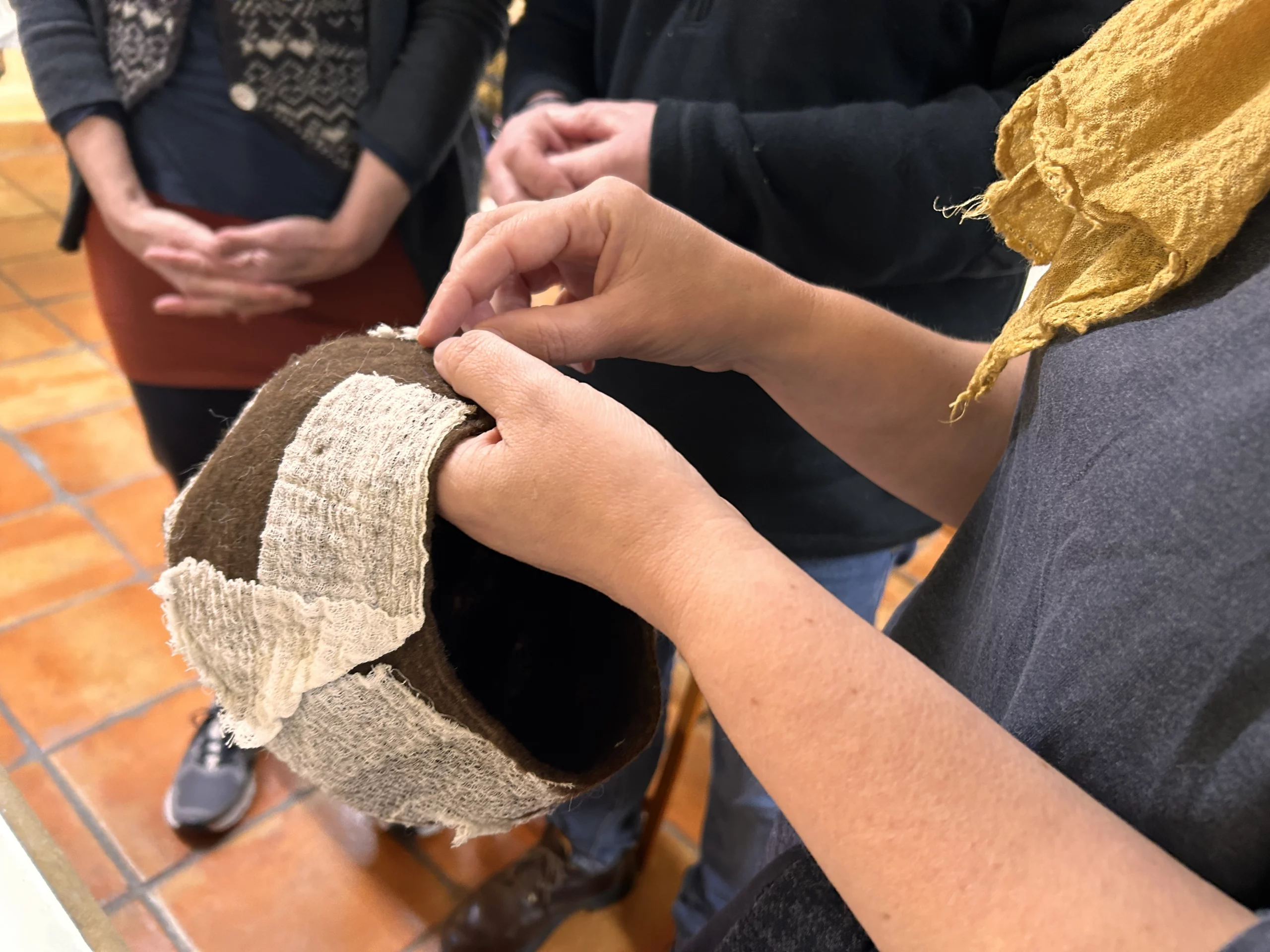 El objetivo del taller ha sido aprender el uso y comportamiento de las fibras de lana a través de la técnica del fieltro nuno. Una actividad que fue toda una experiencia sinestésica en la que lo táctil se asociaba con los demás sentidos, recuerdos y emociones.