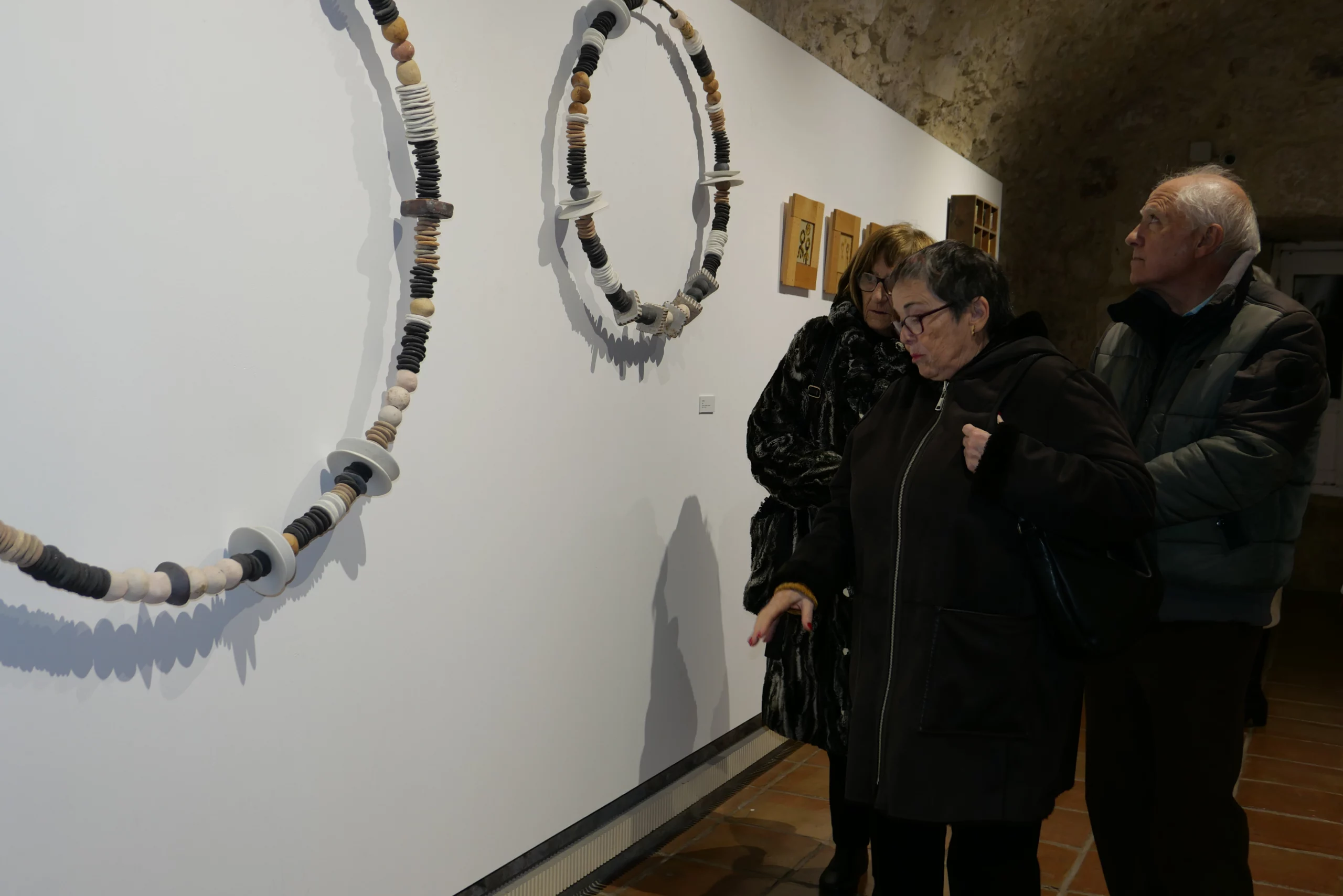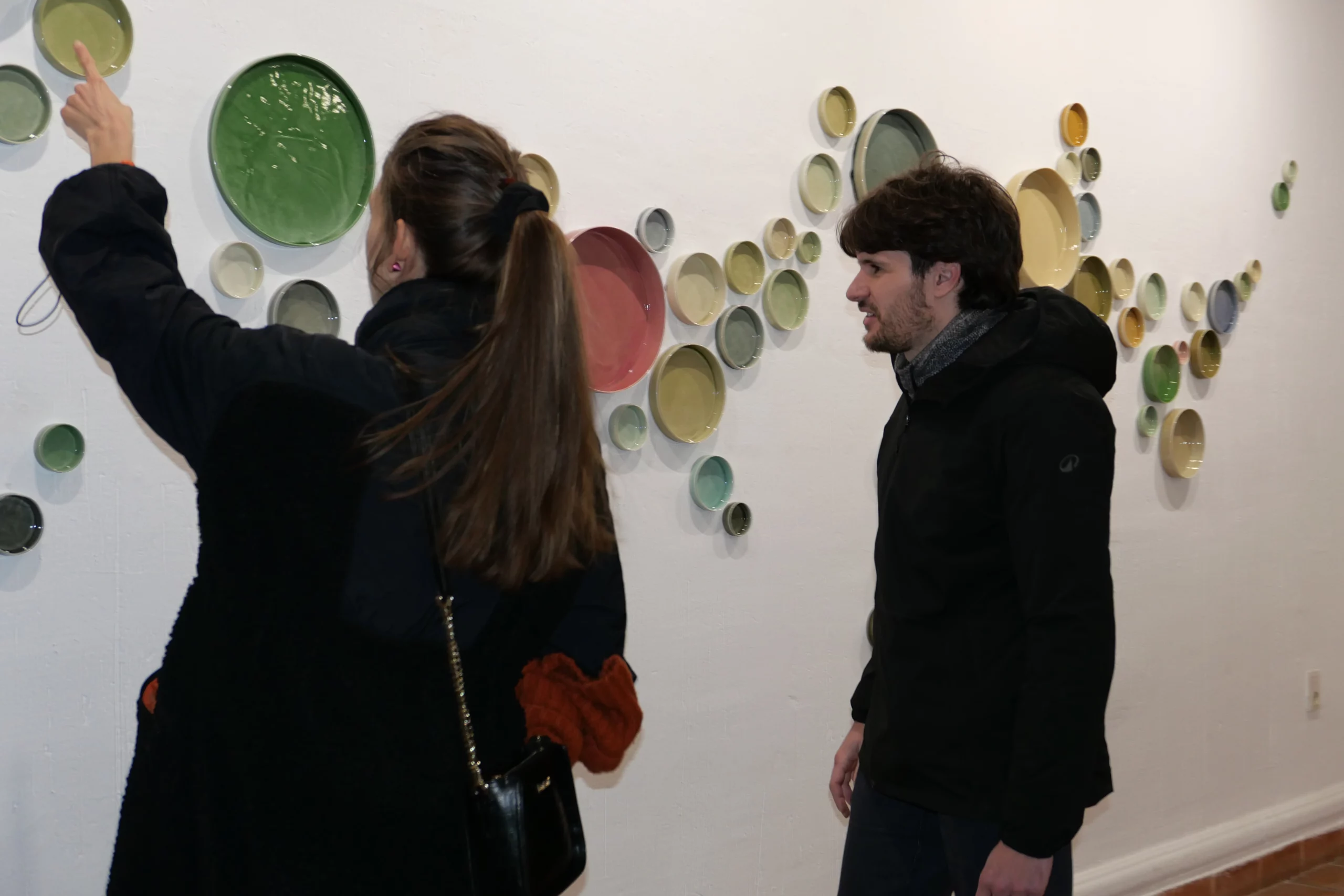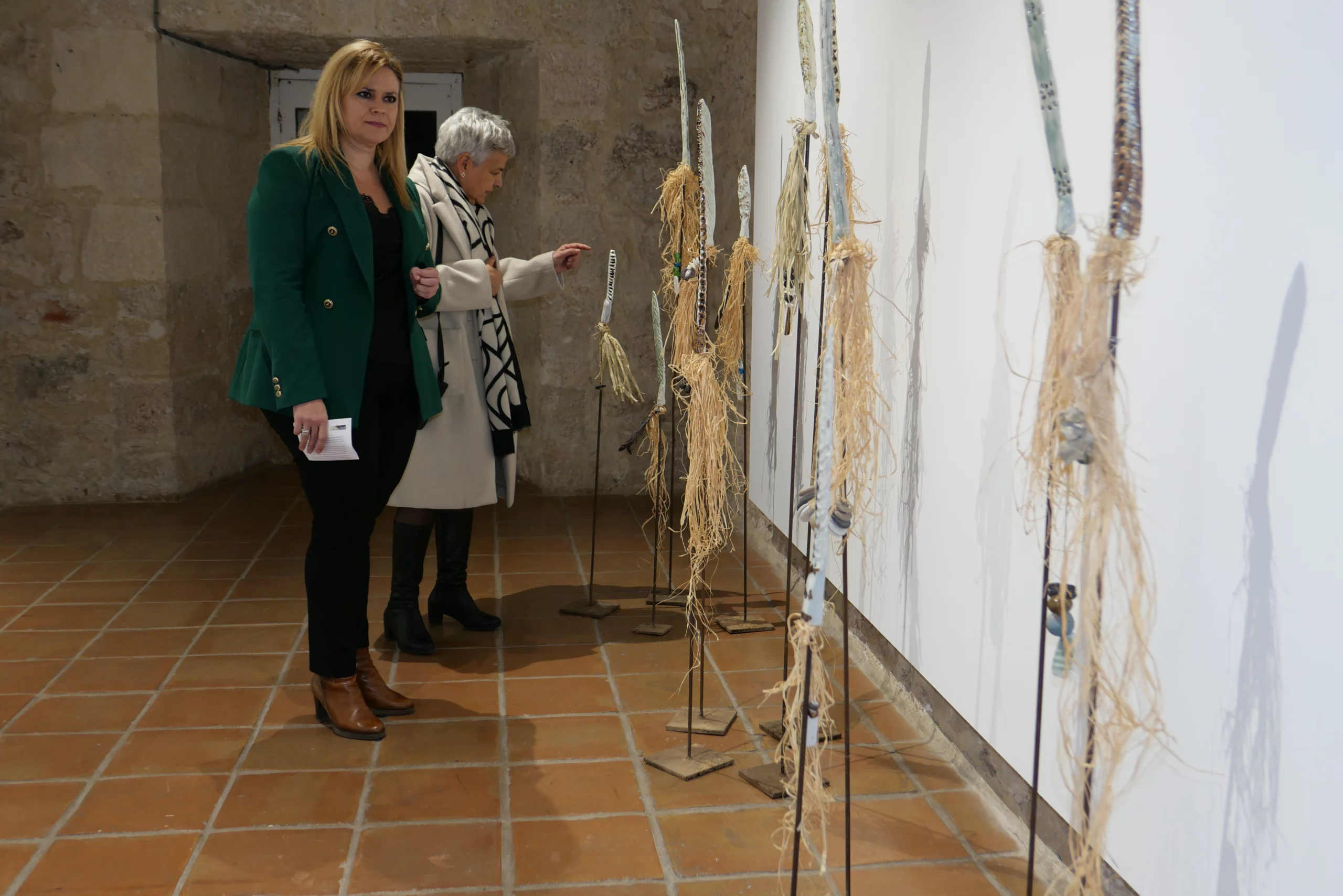 En las salas inferiores hay diferentes obras; bandejas y platos en tonalidades otoñales, muebles y lámparas de hierro decoradas con material refractario, cuadros de gres esmaltados, lanzas de hierro con puntas de porcelana, tazas que llevan impresas diferentes plantas vegetales, piezas de esmaltes saturados de origen chino, escritura en engobes cerámicos, jarrones y vasos con motivos florales, cuencos de color “rojo de china”, etc.