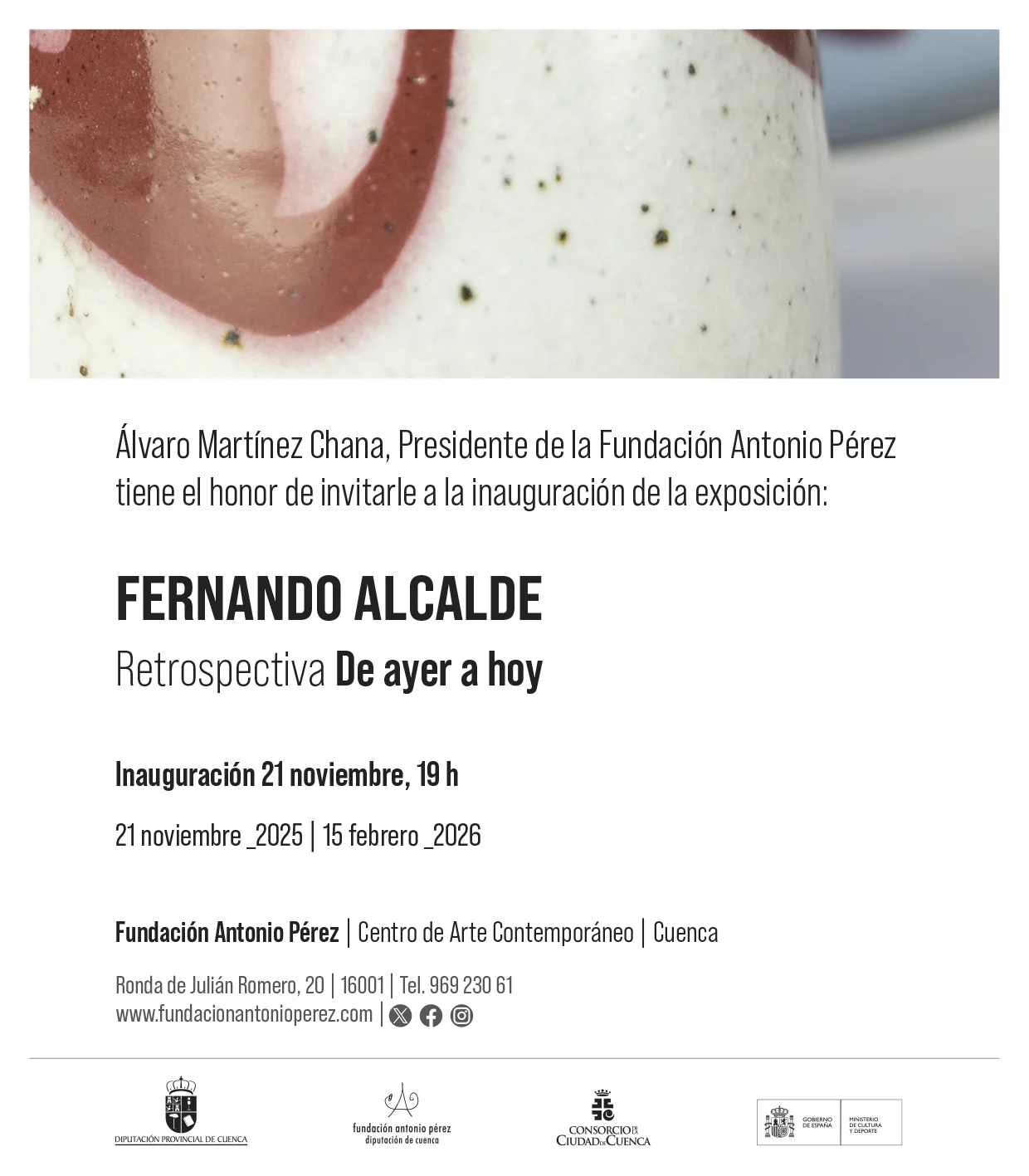 El próximo viernes 21 de noviembre a las 19:00h, nuestro Centro de Arte Contemporáneo de Cuenca acoge la inauguración de la exposición Retrospectiva De ayer a hoy de Fernando Alcalde.