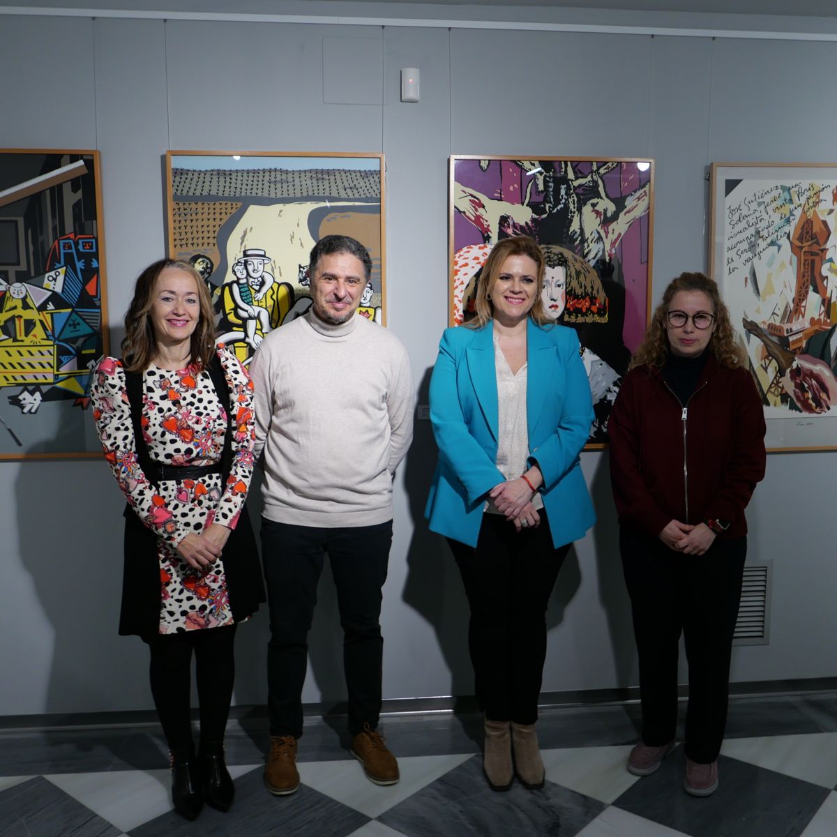 fotografía, los miembros del jurado con las dos obras premiadas en el centro de la imagen;