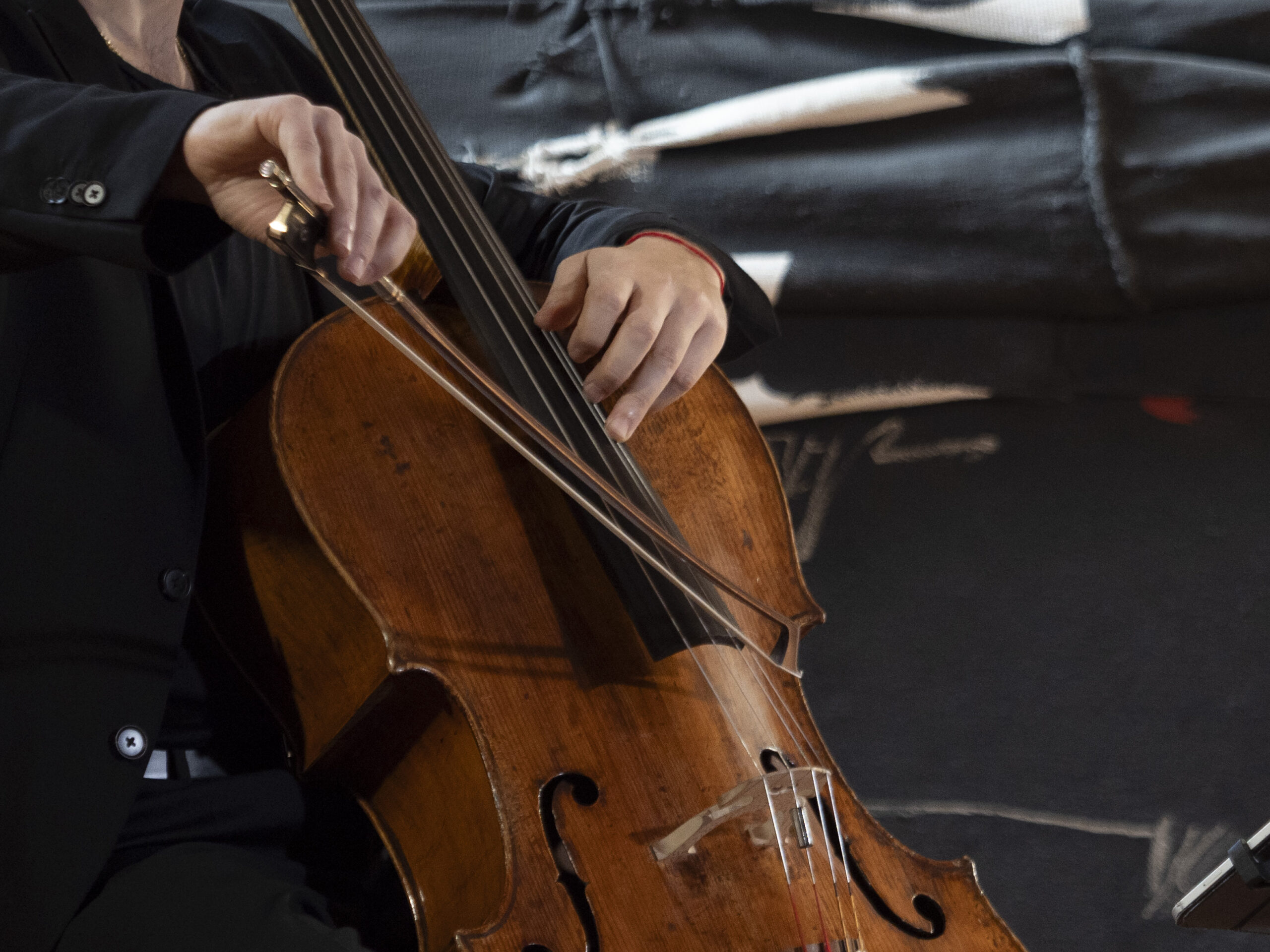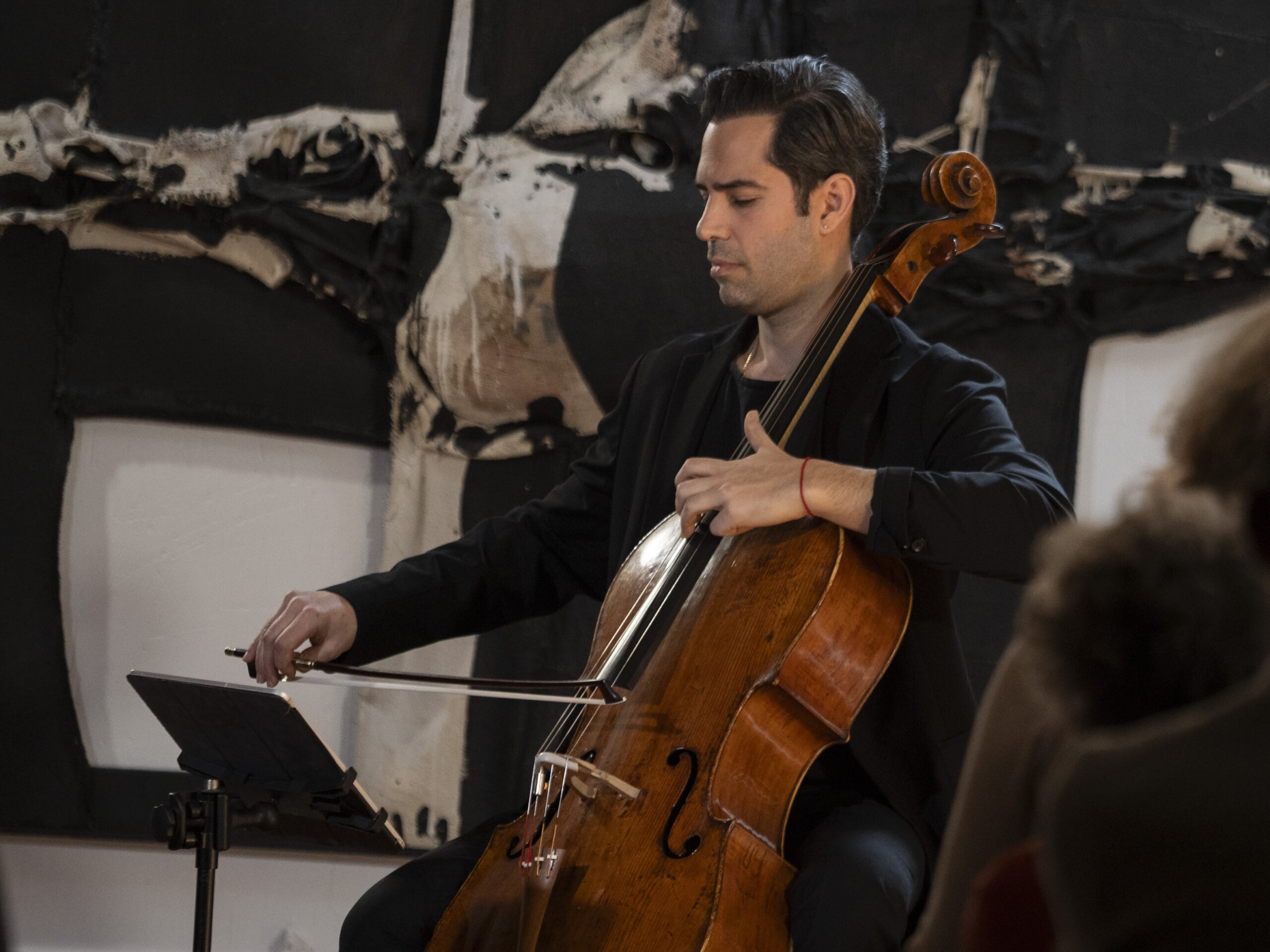 El violonchelista Guillermo Pastrana, flanqueado por las célebres arpilleras de Millares, deleitó al público de la Semana con un programa titulado ‘Diálogo por la paz’. Un recorrido de gran profundidad a lo largo de varios siglos de música, los que van de Bach a Gubaidulina, en un concierto que invitó al recogimiento y a la reflexión y que sirvió también para homenajear a Millares por el centenario de su nacimiento.