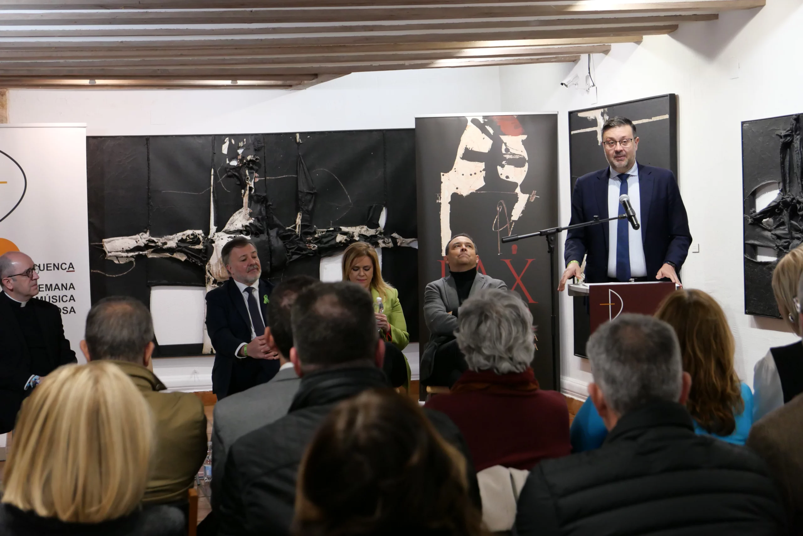 En el acto han intervenido, el alcalde del Ayuntamiento de Cuenca, Darío Dolz Fernández; el director artístico de la SMR, Andoni Sierra Ron; el consejero de Educación, Cultura y Deportes de la Junta de Comunidades de Castilla-La Mancha, Amador Pastor Noheda; la diputada provincial de Cultura y concejal de Cultura del Ayuntamiento de Cuenca, María Ángeles Martínez Hernández; el dean presidente de la Catedral de Cuenca, José Antonio Fernández Moreno; y la directora de la Fundación Globalcaja Cuenca, Henar de la Sierra Dimas.